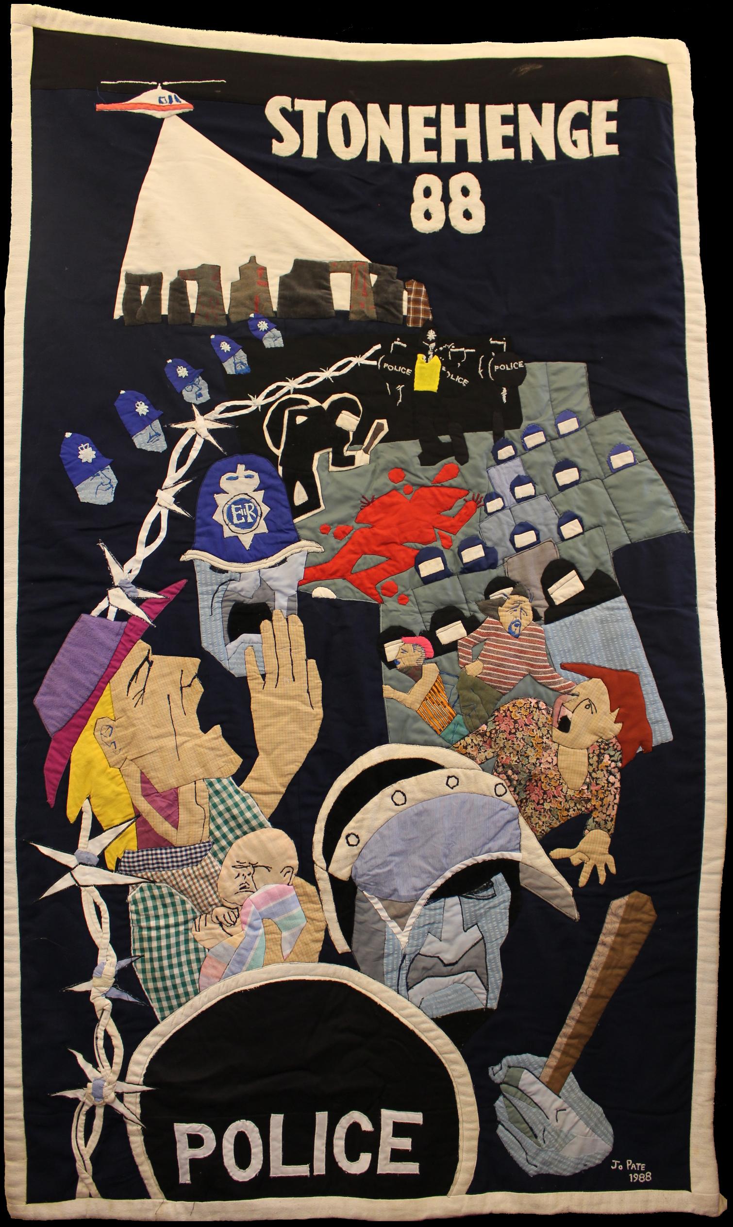 Stonehenge 88, by Jo Pate 1988, Banner, MayDay Rooms Archive