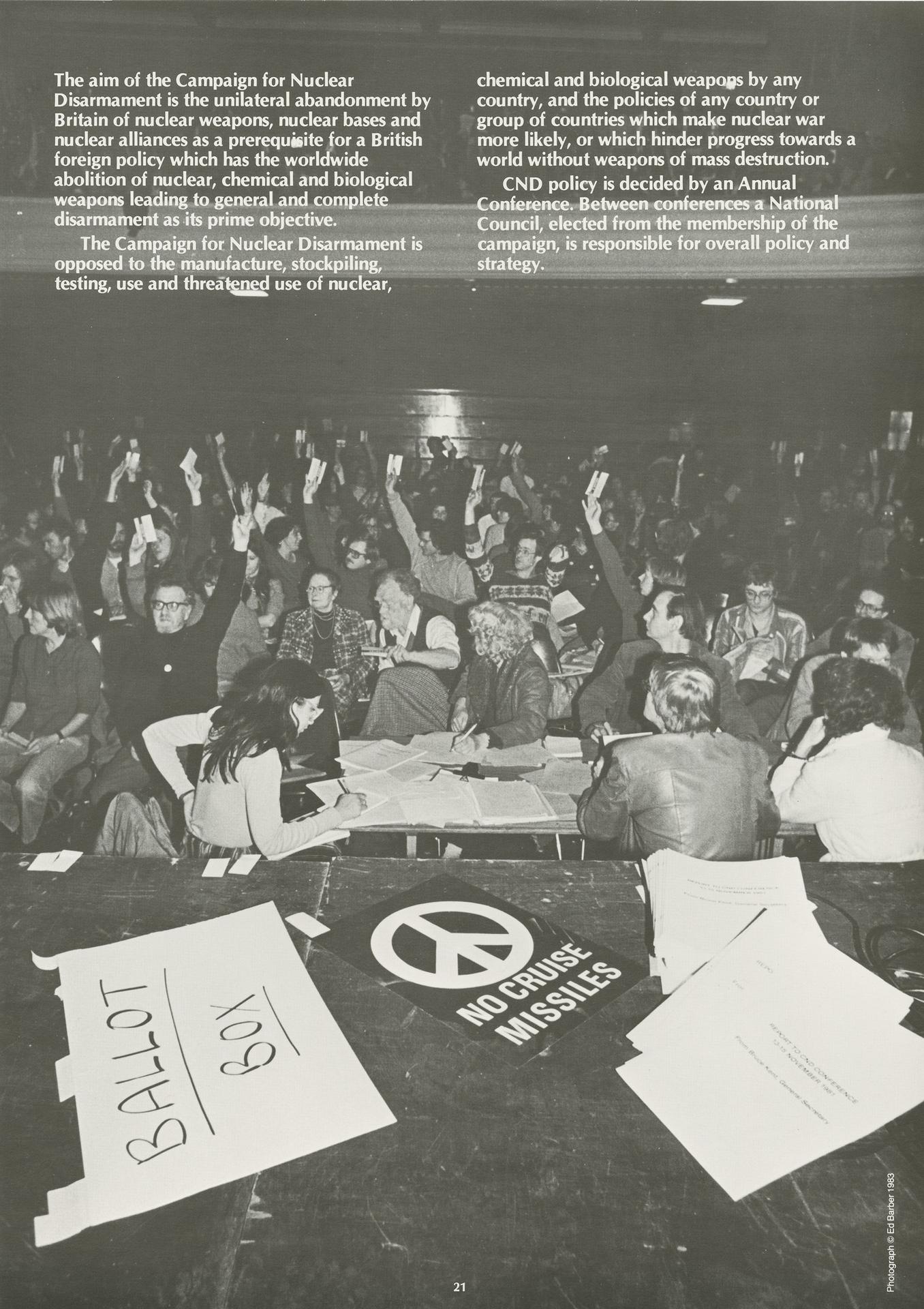 In this section, we include material from the Four Corners archive, The CND Picture Show, a collaboration between photographer Ed Barber and artist Peter Kennard, documenting the Peace Movement.