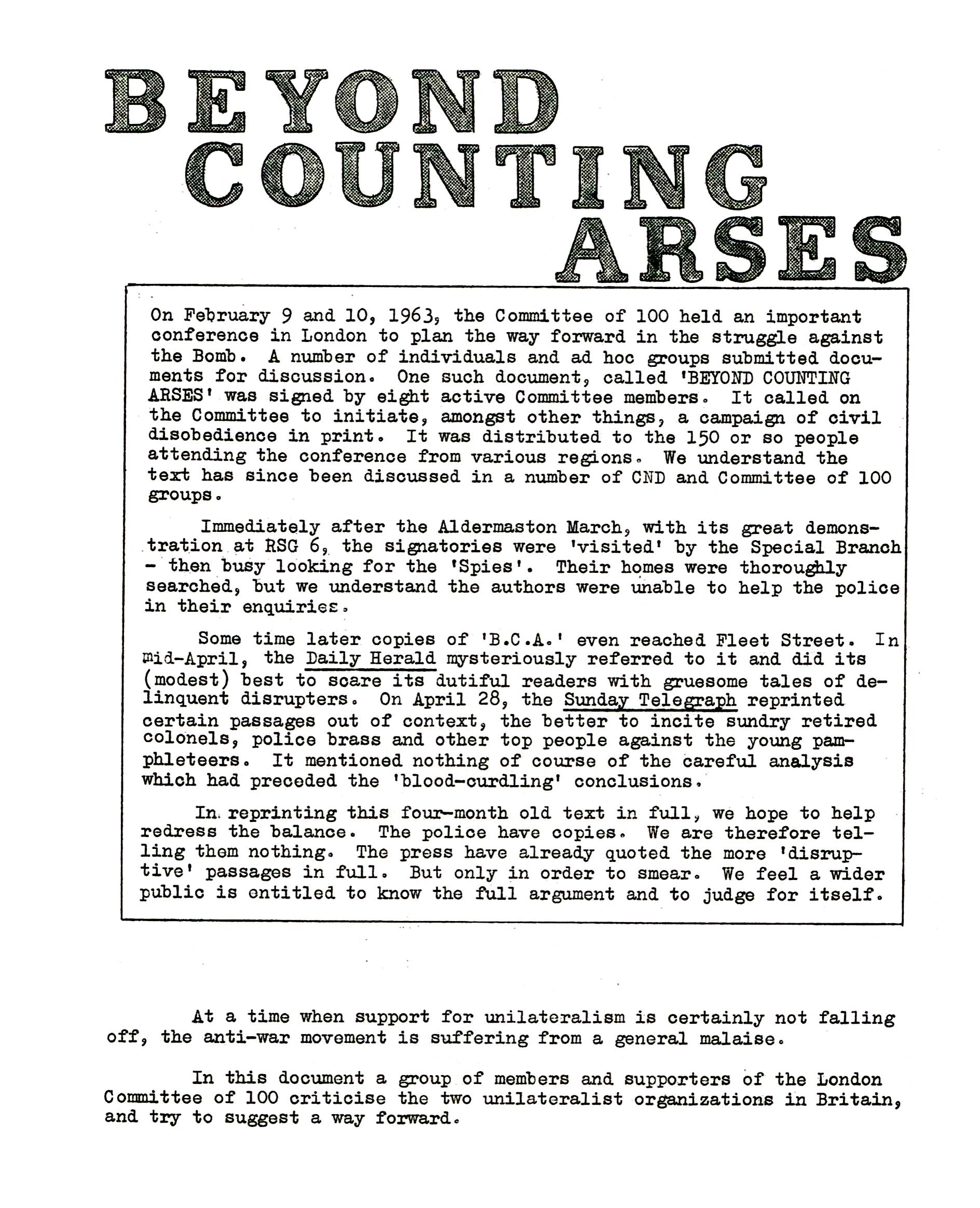 Beyond Counting Arses (from "Solidarity", Vol. 2 No. 11) London Committe of 100 1963, Bulletin, MayDay Rooms Archive