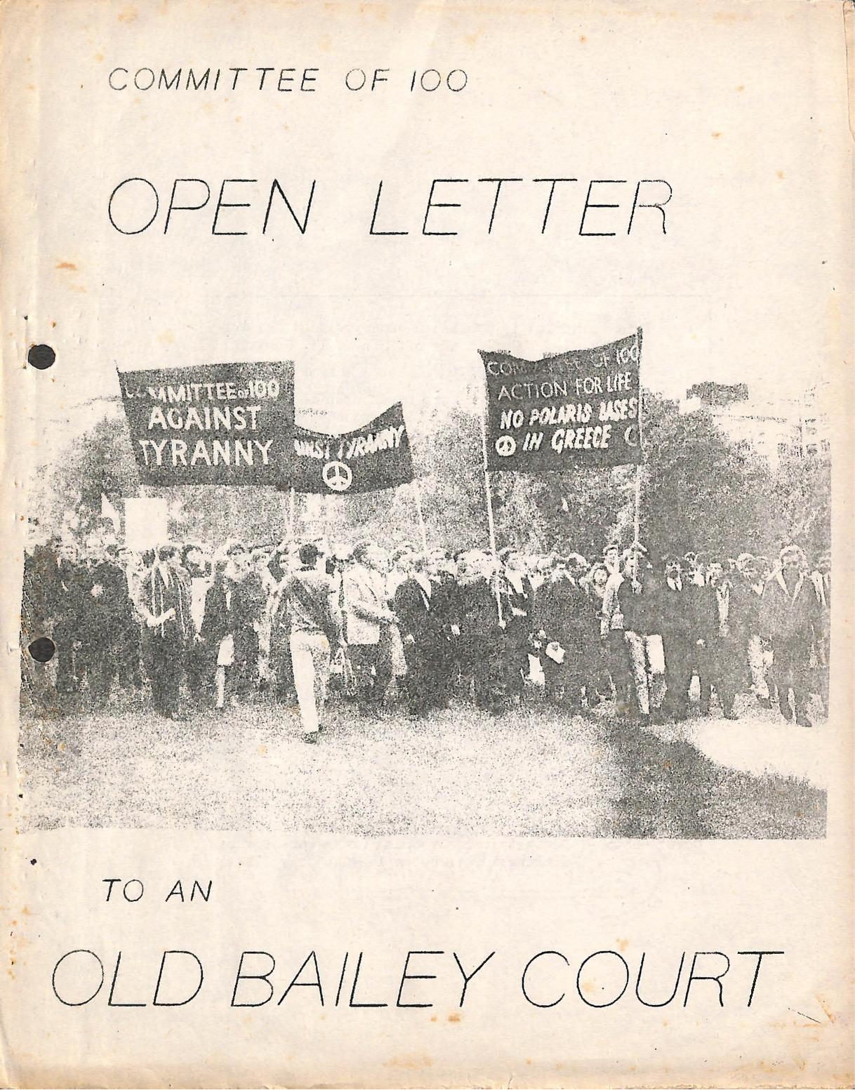 Committee of 100 - Open letter to an old bailey court , Pamphlet, November 1963, MayDay Rooms Archive