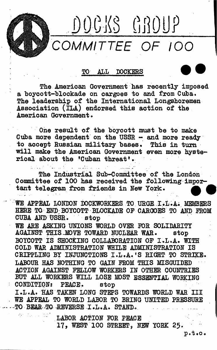 Committee of 100 - To all dockers, leaflet, undated, MayDay Rooms Archive