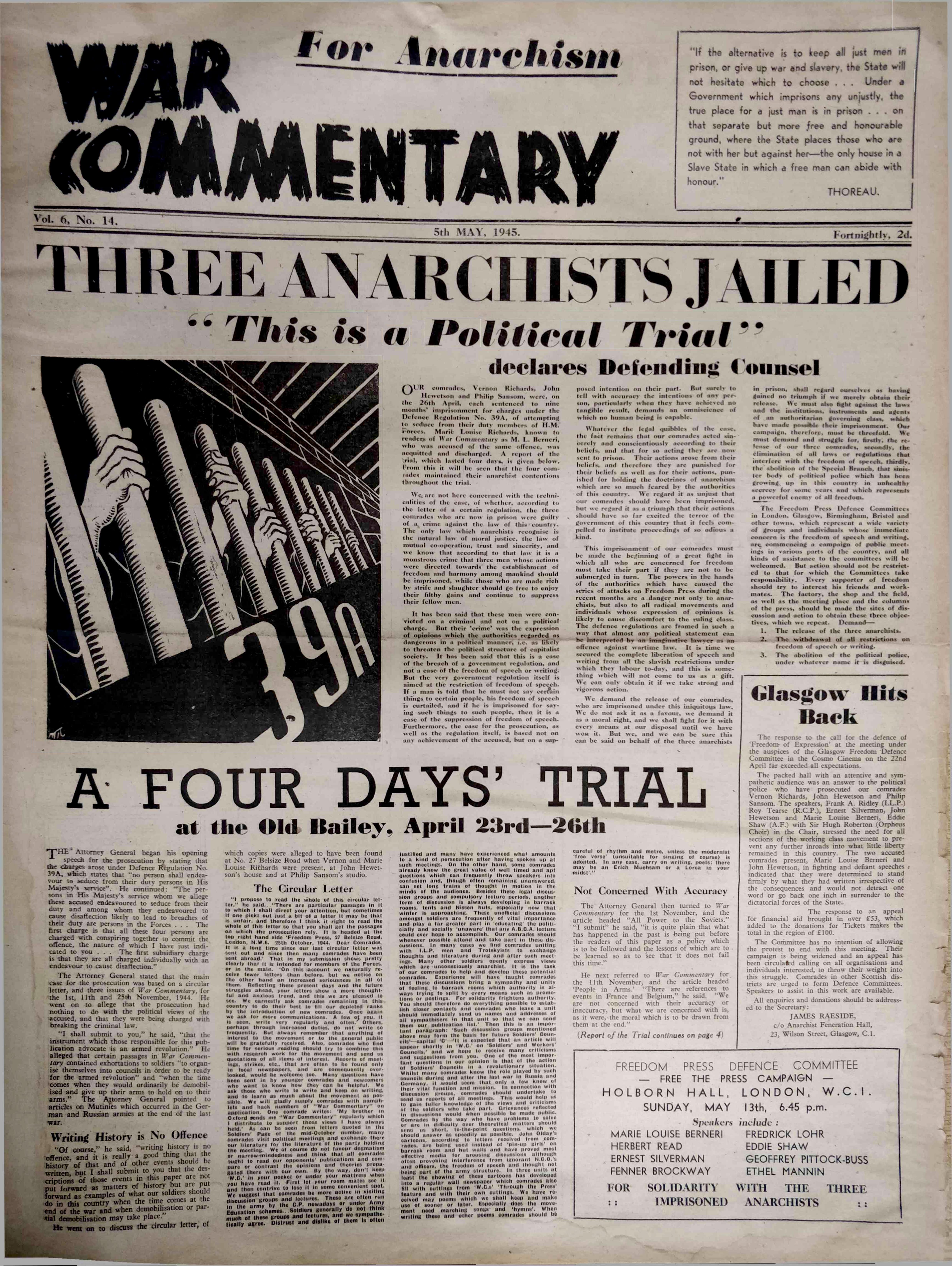 Three Anarchists Jailed War Commentary 1945, Newspaper clipping (Freedom Press, London), Spirit of Revolt Archive