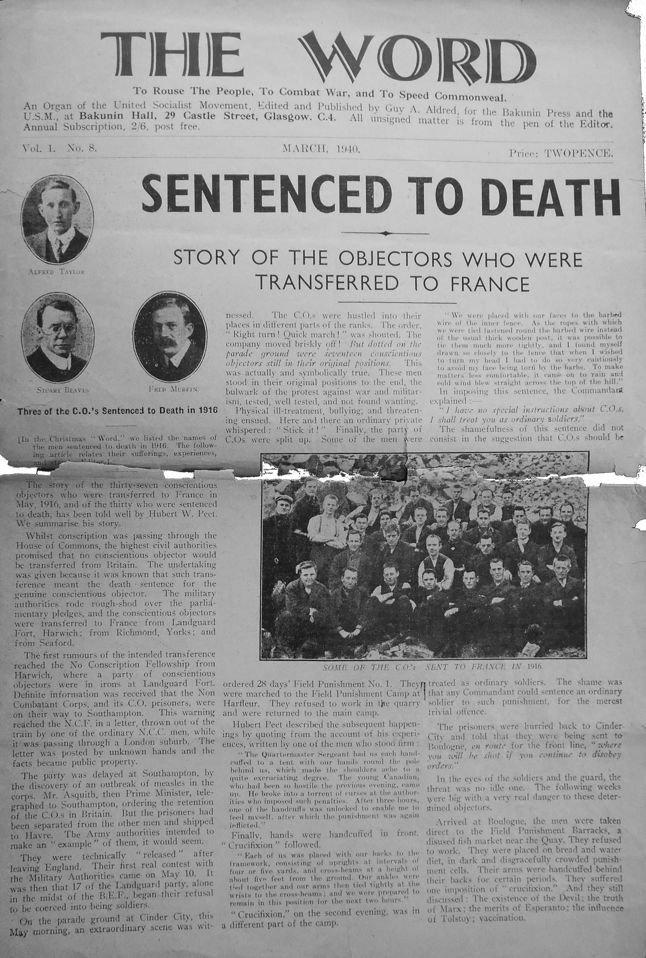 Sentenced to Death (from the Word, vol.1, no.8) United Socialist Movement 1940, Newspaper (published by Bakunin Press, Glasgow), Spirit of Revolt Archive