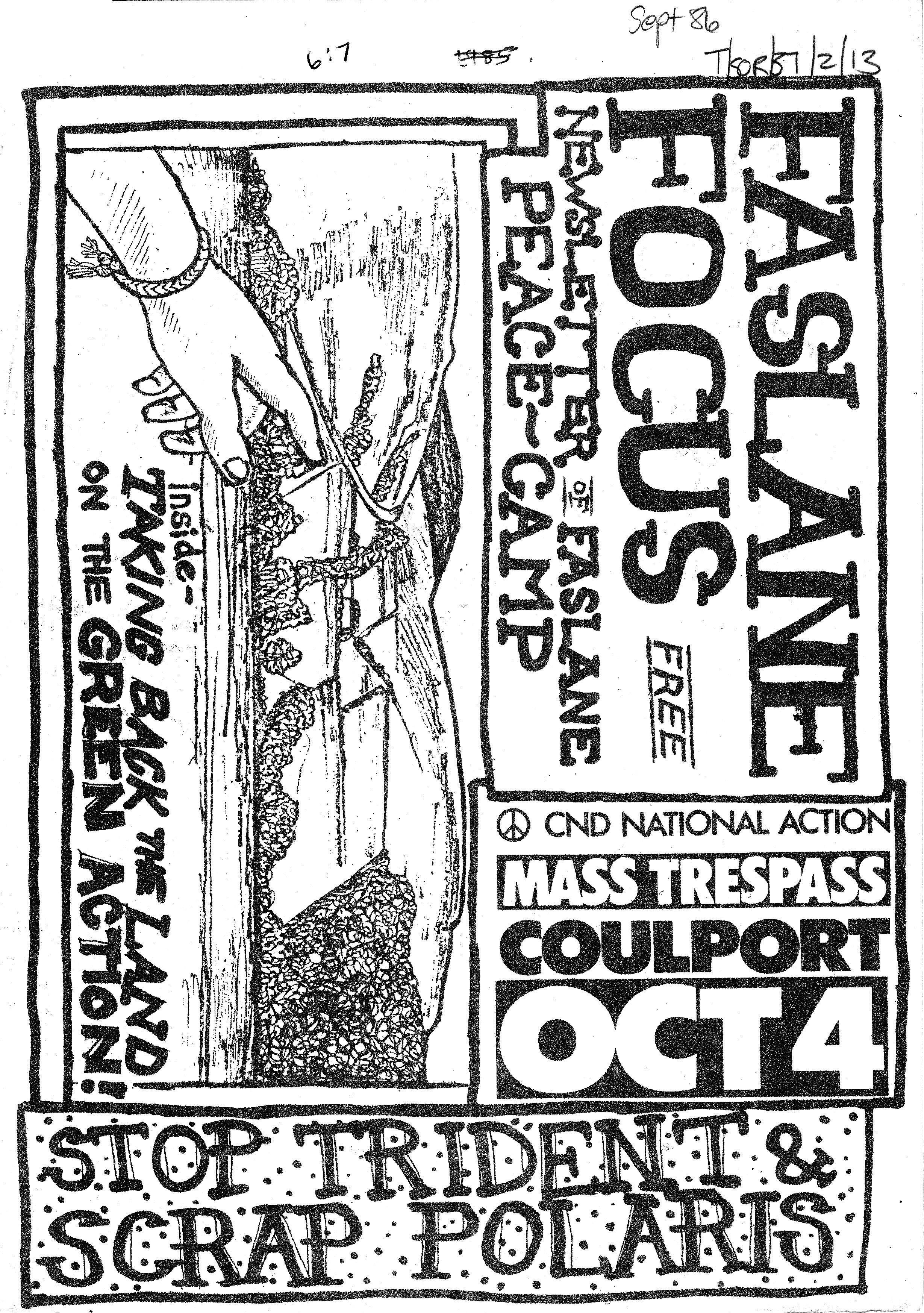 Faslane Focus, September 1986 Faslane Peace Camp 1986, Newsletter, Spirit of Revolt Archive