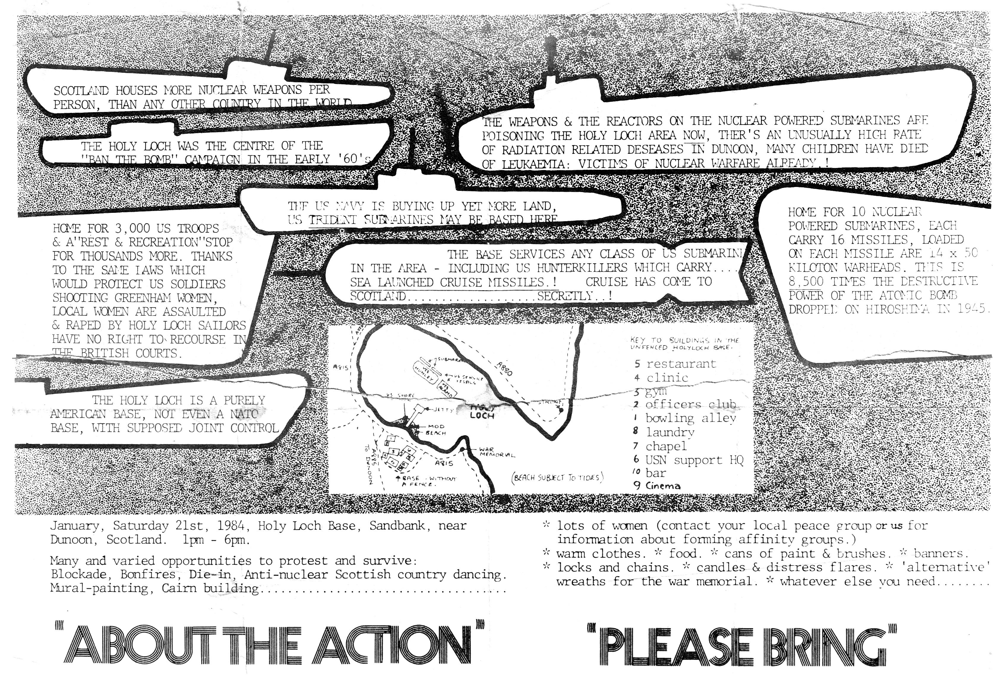 Women's Action Holy Loch ‘84 Glasgow Women for Peace 1984, Leaflet (inside), Glasgow Women's Library
