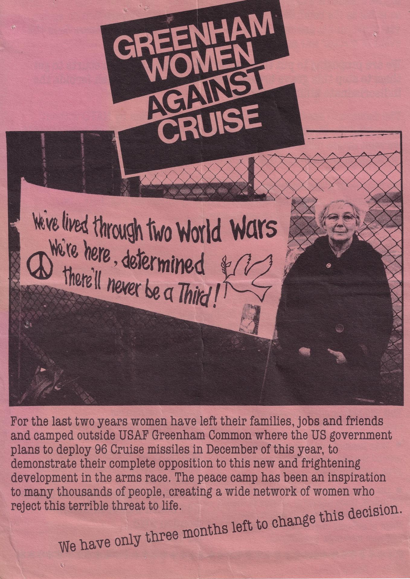 Greenham Women Against Cruise Greenham Common Women’s Peace Camp C.1983, Leaflet, Glasgow Women's Library