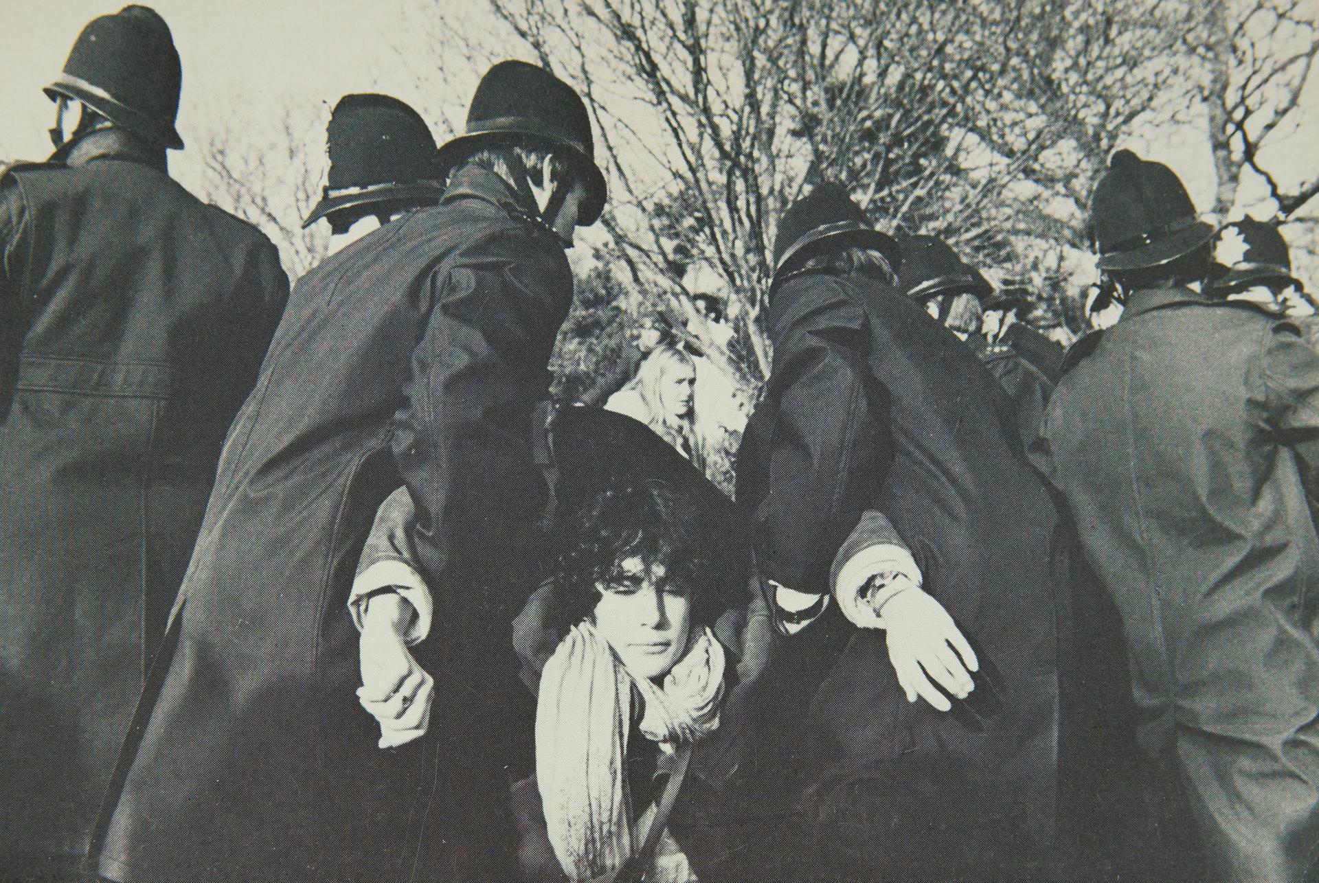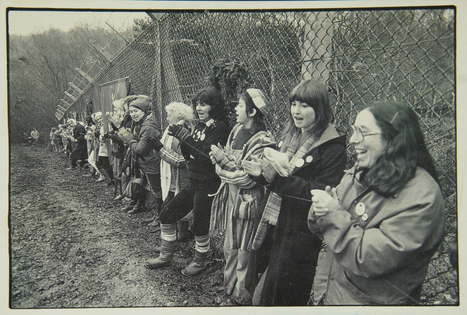 Greenham Common Women’s Peace Camp was the largest women's protest since the struggle for the vote. Women from all walks of life congregated in Berkshire from September 1981 to directly challenge Britain as a war state, the Cold War and the deployment of U.S. nuclear missiles at a local military base. This exclusively female space also fostered a questioning of gender roles, confronting many aspects of militarism and patriarchy, as well as heteronormativity. It was a collective space for thinking, doing, creating rituals and art, for storytelling and healing, for loving and change. Different mini-camps were set up at different gates to the military base, each one named after a different colour and evolving a different character and composition. Many acts of civil disobedience were committed, from regular base incursions, to fence-cutting and tying photos and children's toys to remind soldiers of their humanity. 'Embrace The Base' (1982) was the largest action which saw over 30,000 women coming together to encircle the base's perimeter. The inspiring slogan 'Carry Greenham Home' saw women bring the spirit of the camp with them as they returned to their communities, homes, countries and workplaces. These seeds grew into a global peace network and an experience of defiance which still continues to evolve.