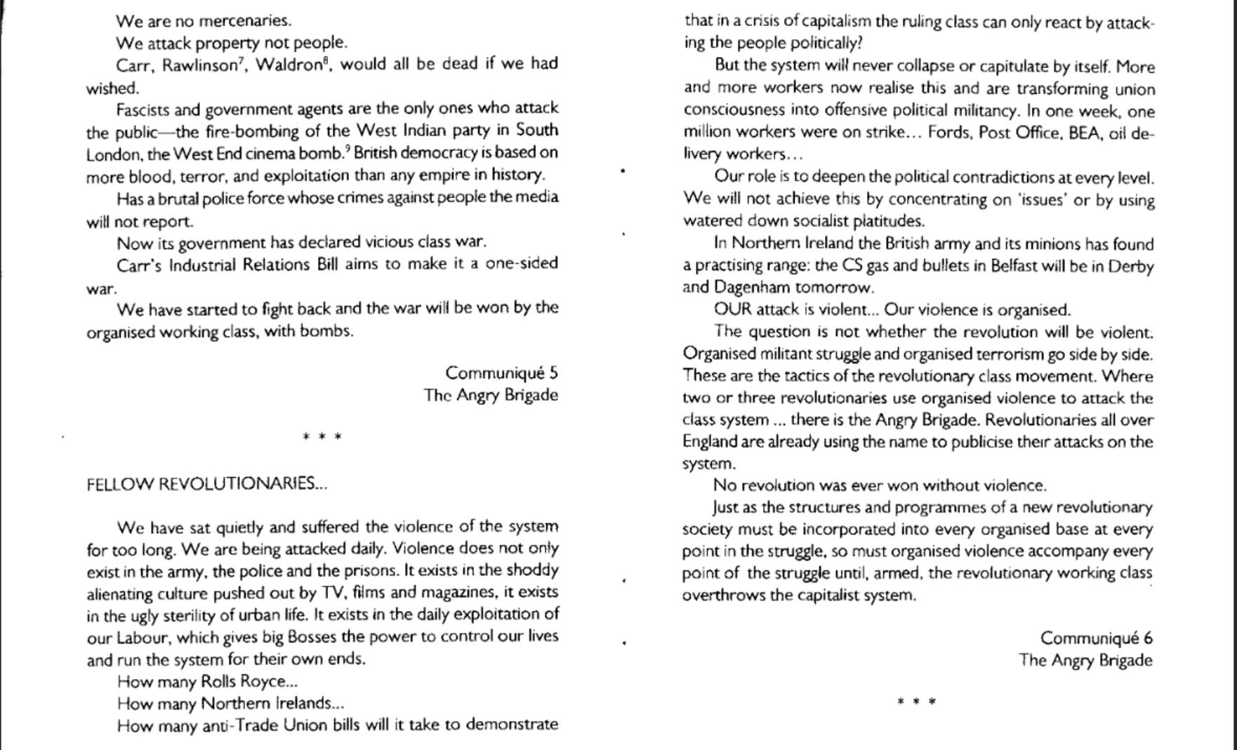 Communiqués 5 and 6 The Angry Brigade 1967-1984: Documents and Chronology 2005, Pamphlet Page, Anarchist Pocketbooks 3