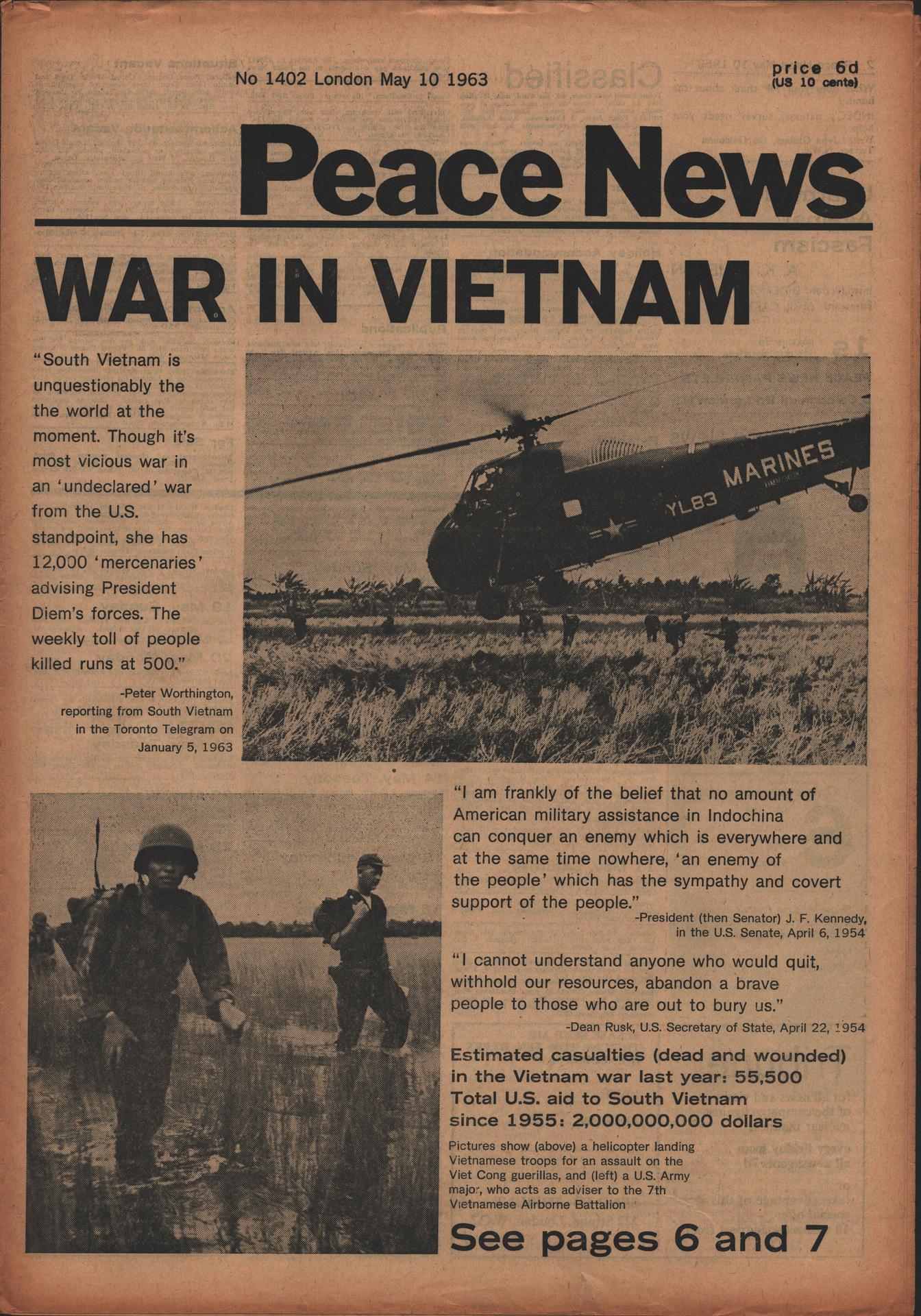 War in Vietnam! (from Peace News, 1963, no.1402) Peace News 1963, Newspaper cover, MayDay Rooms Archive