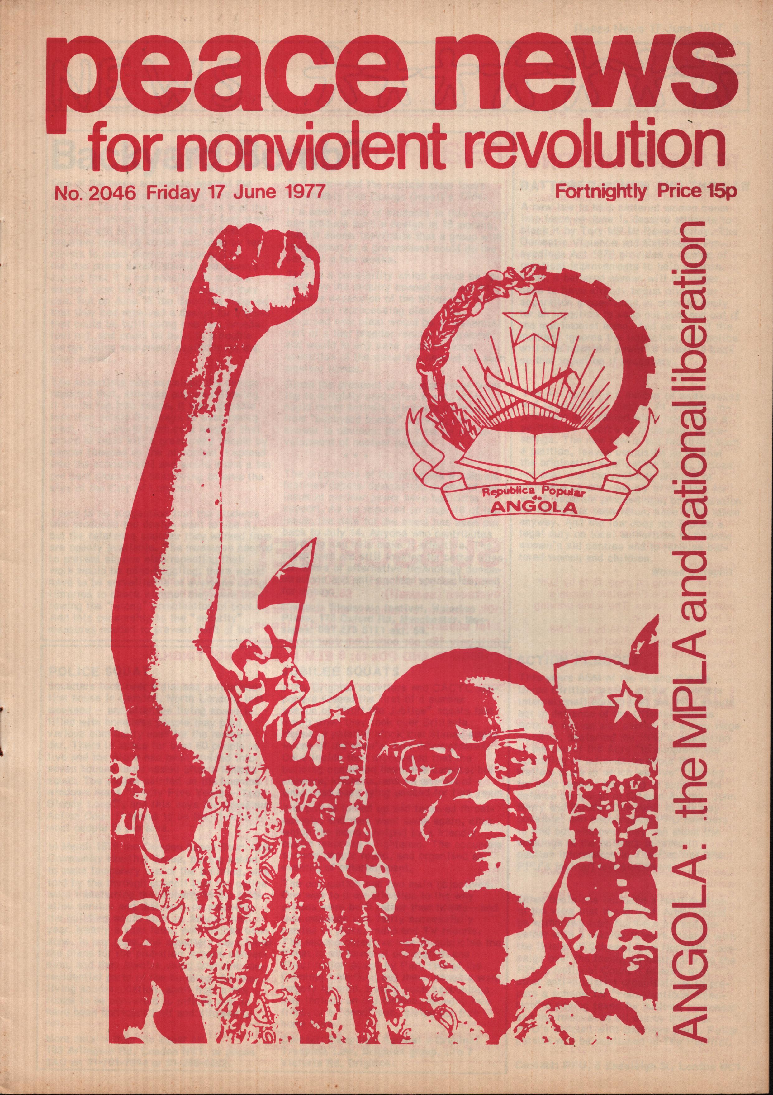 Angola: the MPLA and National Liberation, Peace News 1977, Newspaper cover, MayDay Rooms Archive