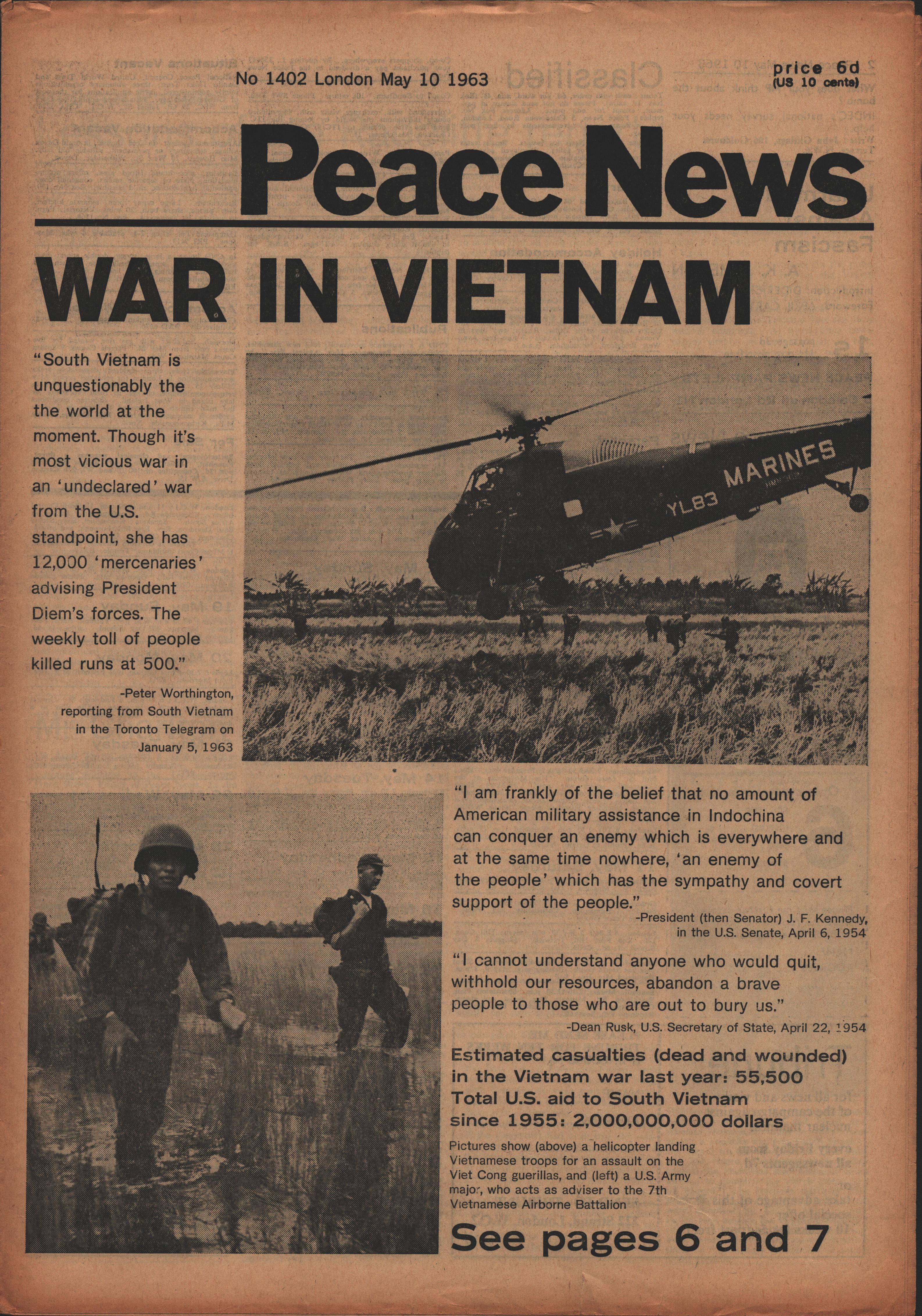 War in Vietnam! (from Peace News, 1963, no.1402) Peace News 1963, Newspaper cover, MayDay Rooms Archive