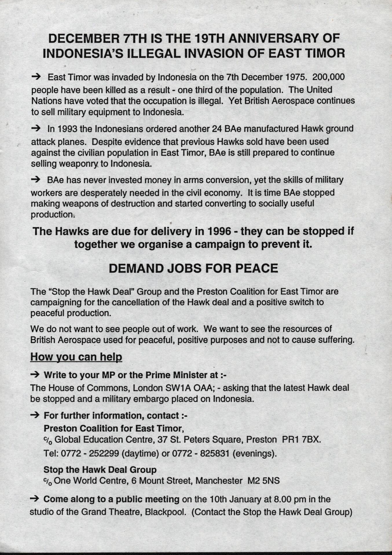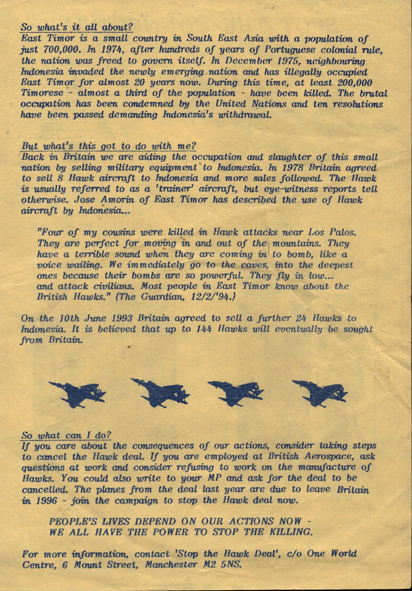 Stop BAe Arming Indonesia, Seeds of Hope Ploughshares leaflet (back), 1996, Private collection