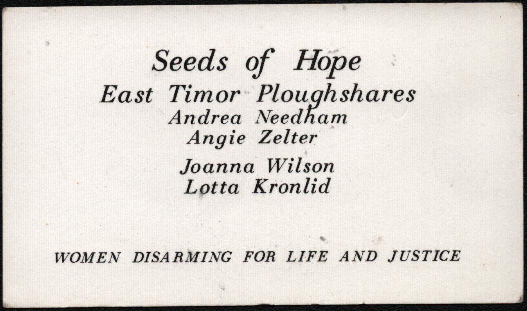 Seeds of Hope, Visiting Card, 1996, Private Collection