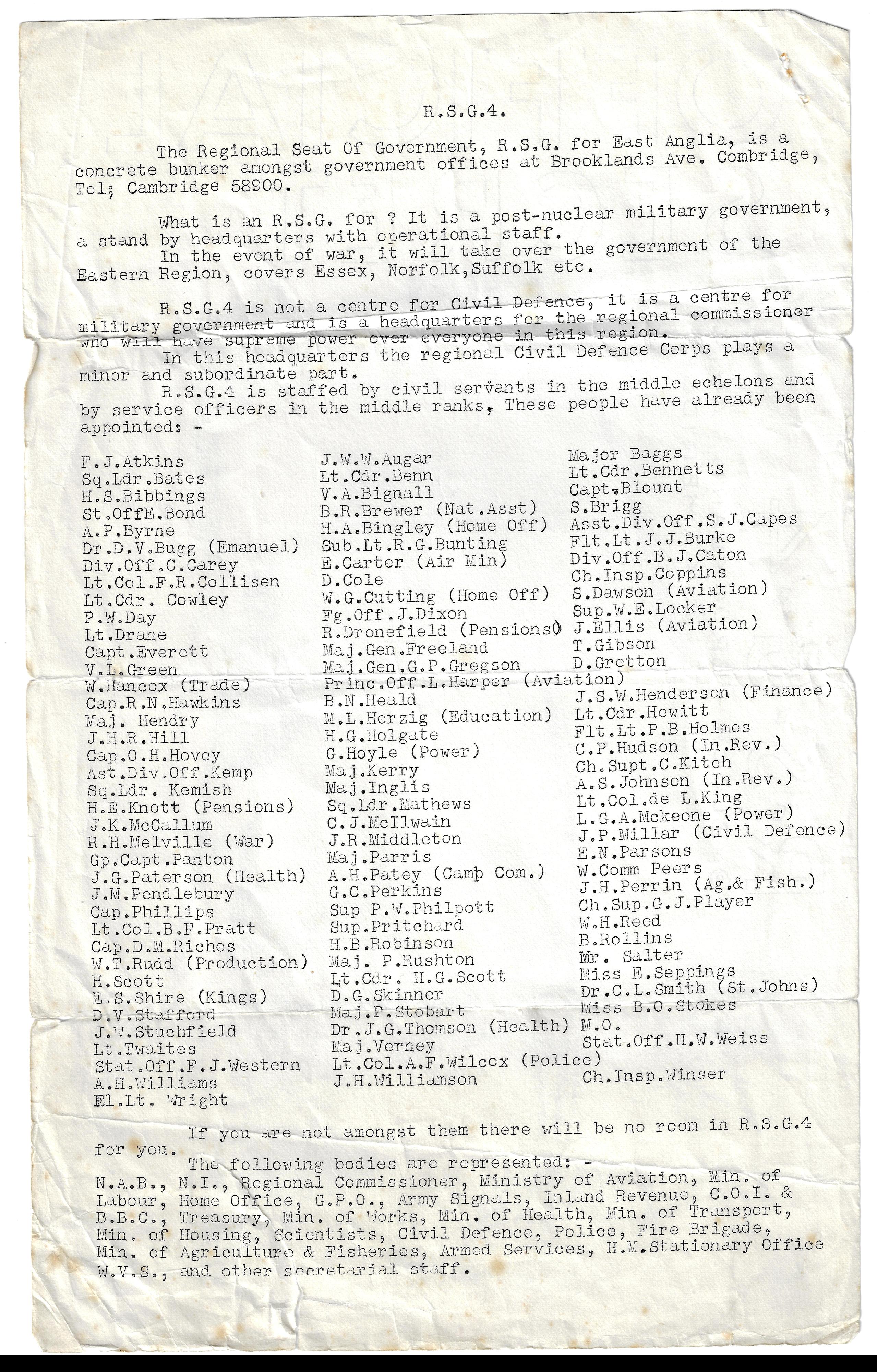 Regional Seat of Government for East Anglia - RSG:4 (From Danger! Official Secret) Spies for Peace (Committee of 100) 1963, Leaflet (back), Spirit of Revolt Archive