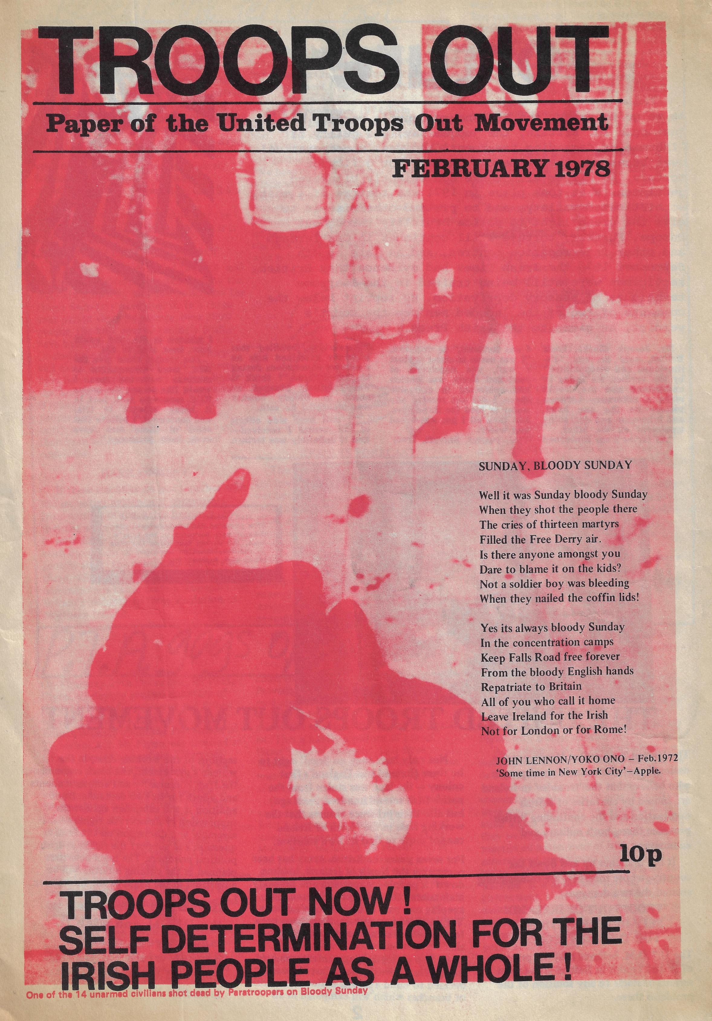 Troops Out: Paper of the United Troops Out Movement Troops Out Movement February 1978, Bulletin, MayDay Rooms Archive