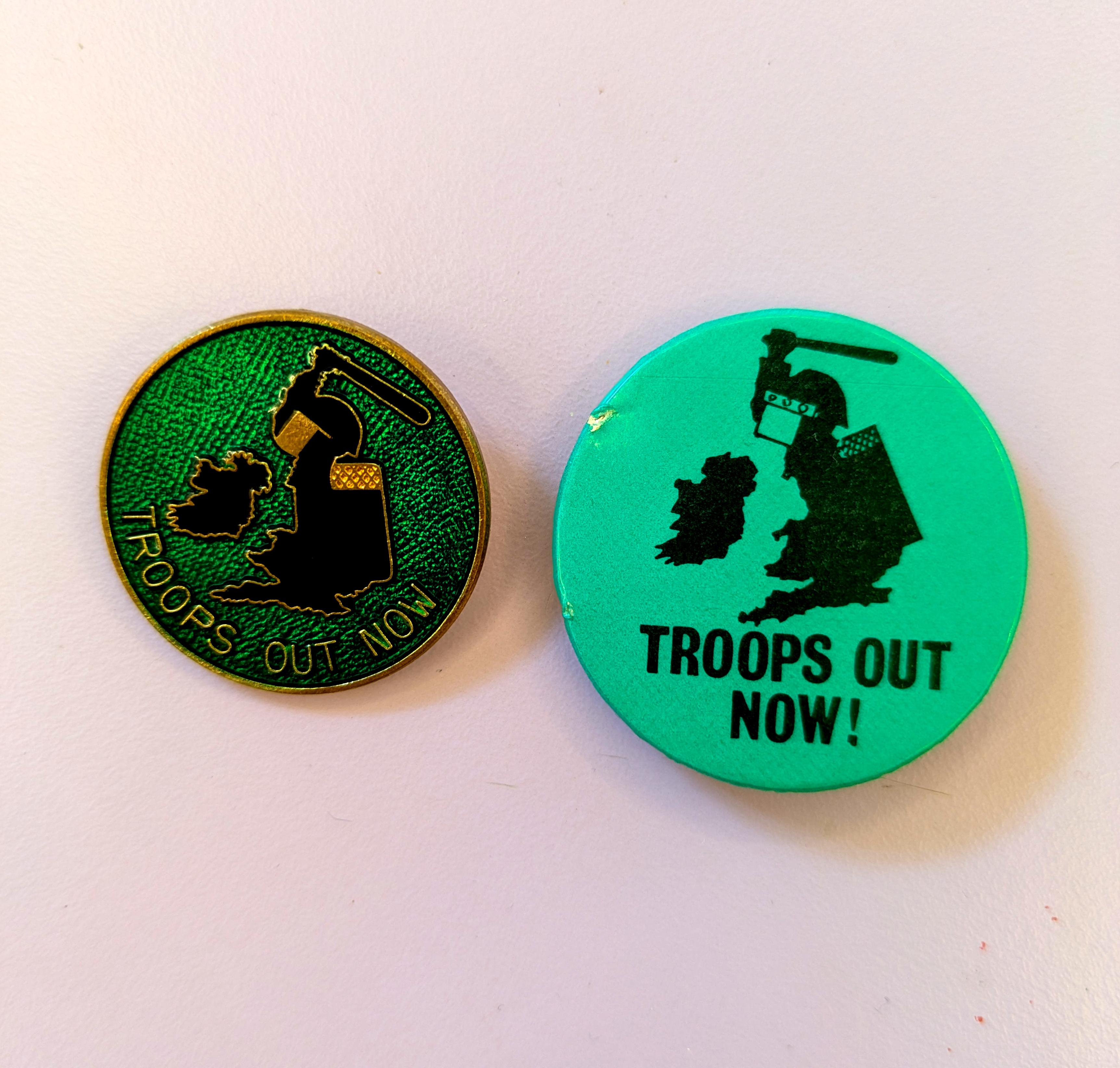 Assorted Troops Out Badges Troops Out Movement 1970s and 80s, Badges, MayDay Rooms Archive