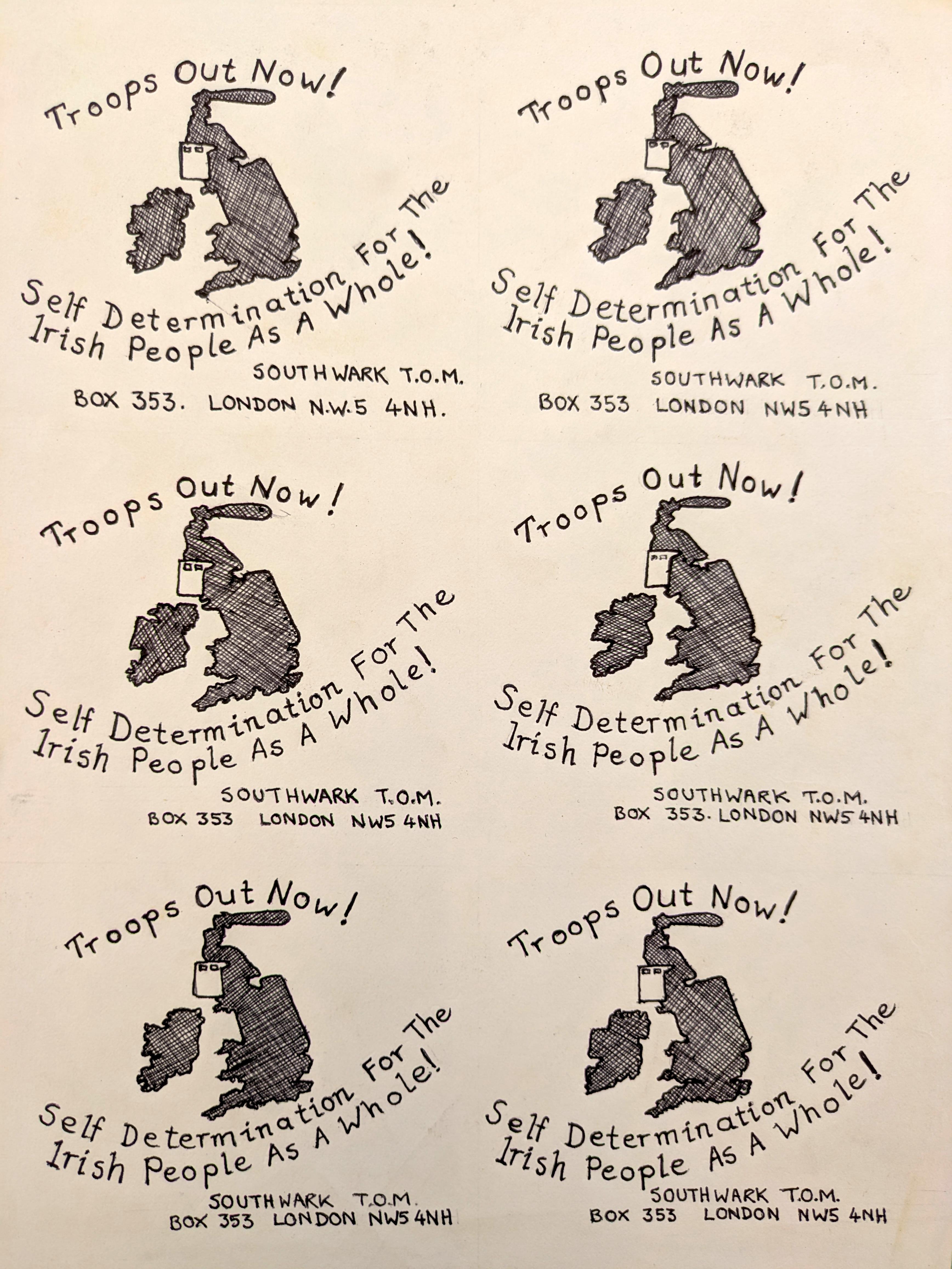 Self Determination for the Irish people as a Whole! Troops Out Movement (Southwark) 1983, Composite Leaflet, MayDay Rooms Archive