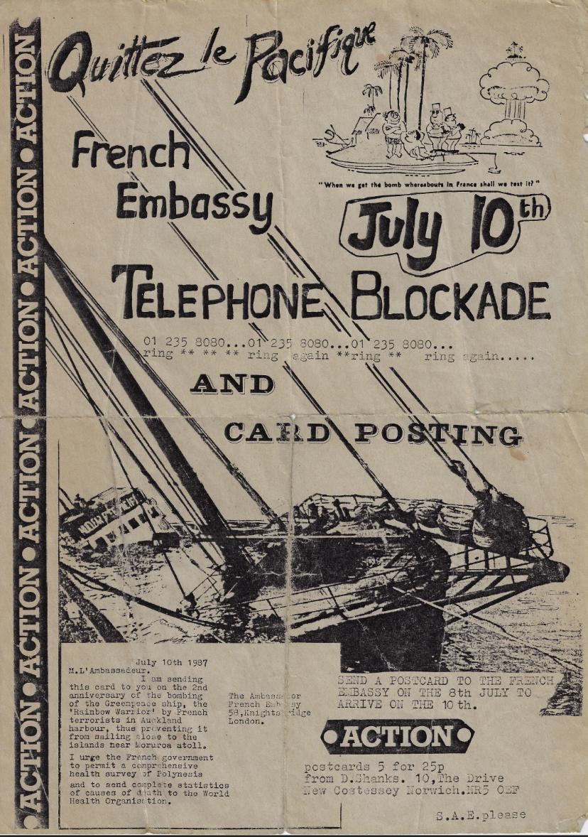 Quittez le Pacifique, Leaflet, 1987, Women for a Nuclear Free & Independent Pacific, Glasgow Women’s Library Archive