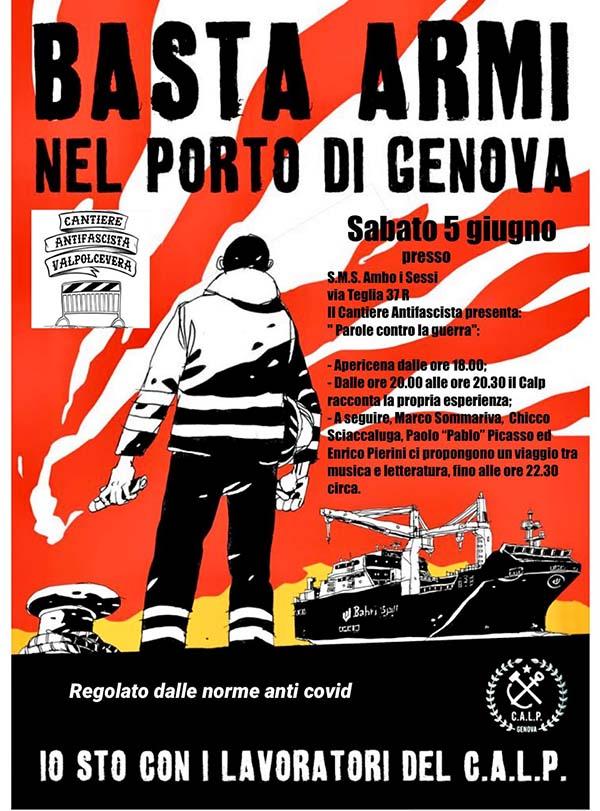 Basta Armi nel Porto di Genova (No More Weapons in the Port of Genova) CALP 2021, Leaflet