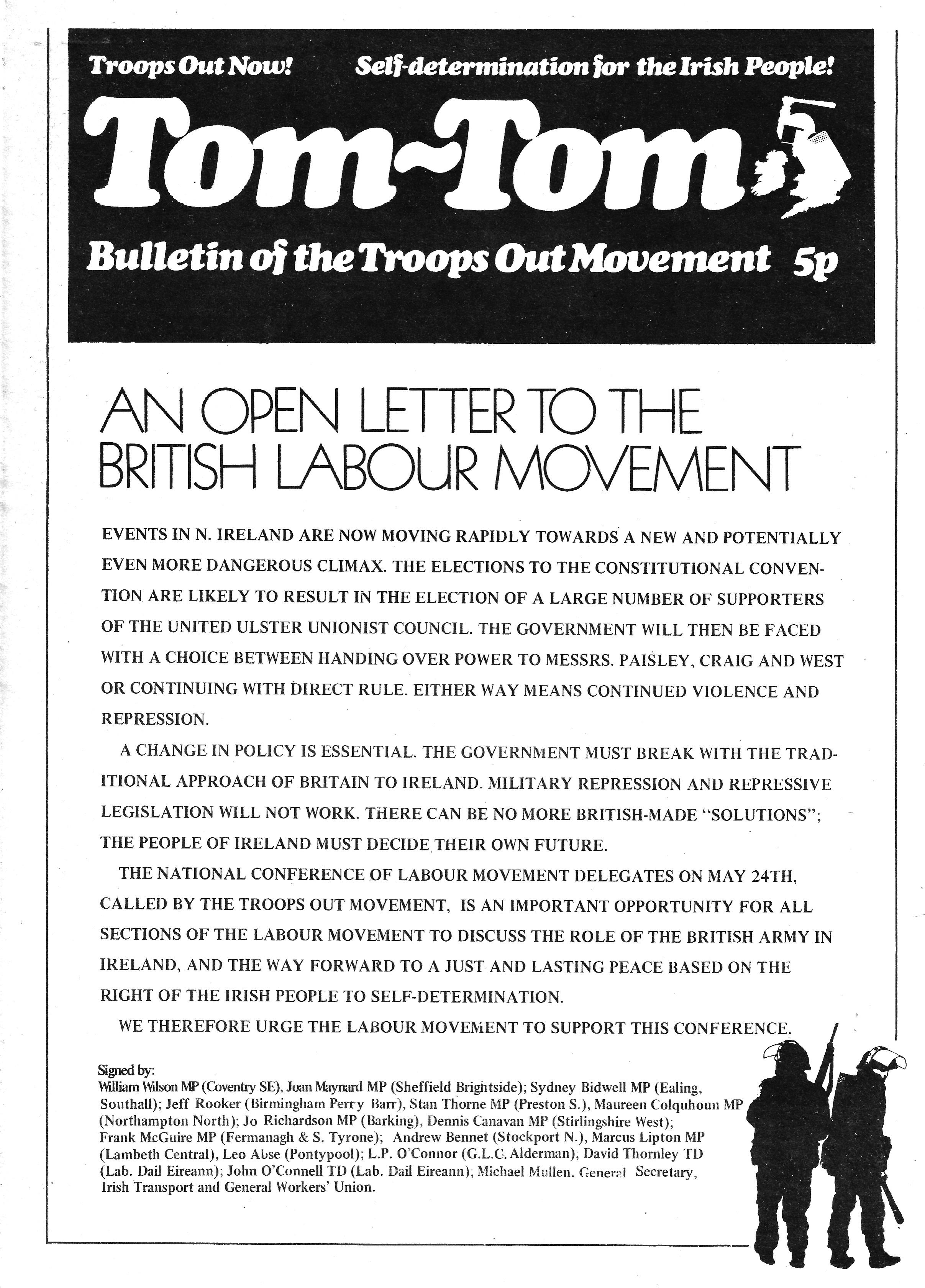Tom-Tom: Bulletin of the Troops Out Movement C1983, Leaflet, MayDay Rooms Archive